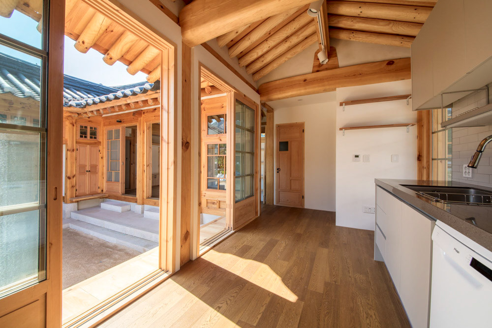 프로젝트명: 휘게 구분: 건축_설계 및 감리 주소: 서울 은평구 진관동 연도: 2017 연면적: 23평/74.45m² 대지면적: 58평/191.6m² 시공: 서울한옥 사진: 이상훈 HooxMe 2017 서울시우수한옥
