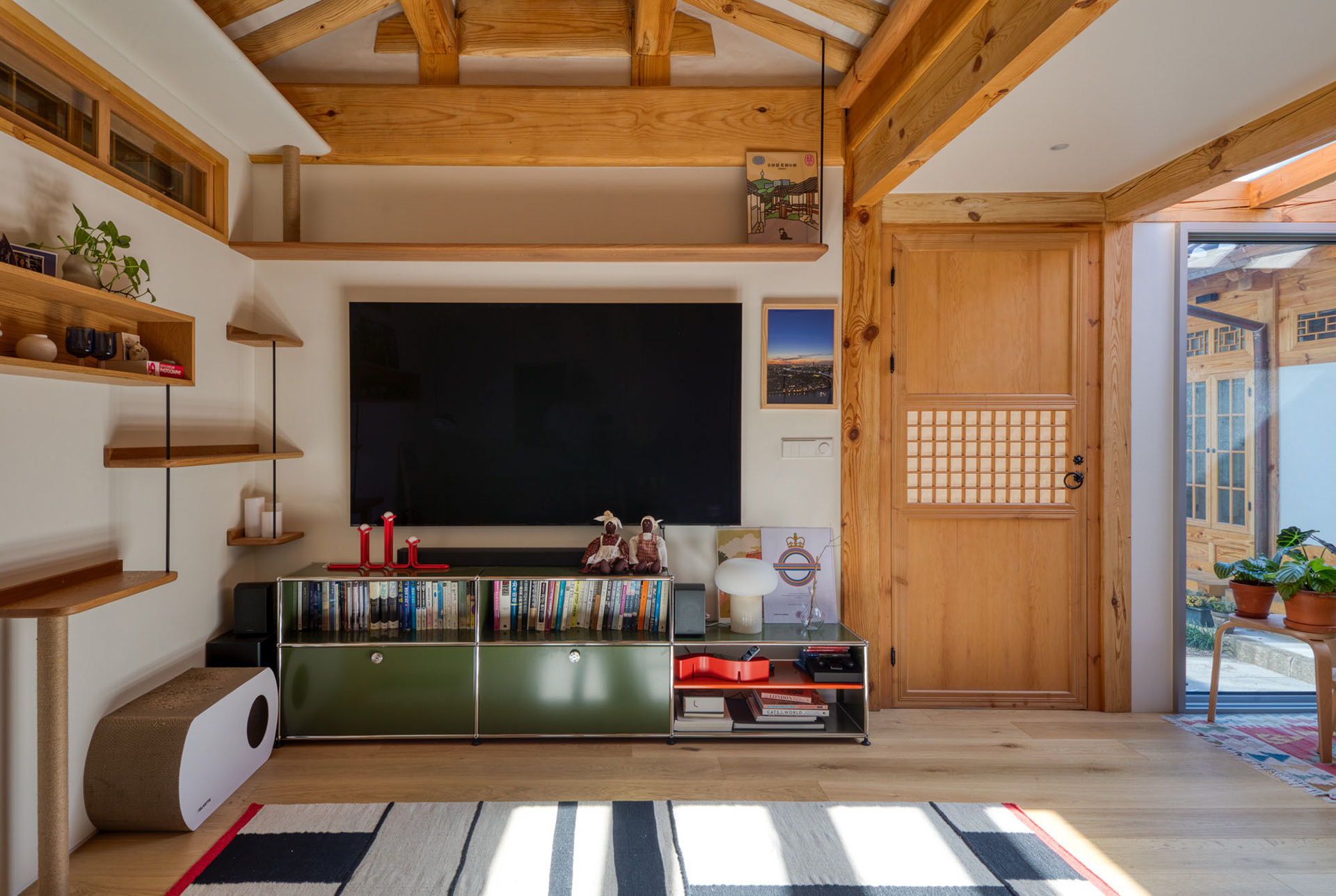 내부 인테리어 역시 목구조를 필요한 부분에만 노출하고 나머지는 간결하게 마감하여, 전통 구조의 미(美)와 현대 공간의 시각적 간결함이 공존하도록 했습니다.